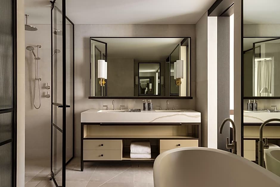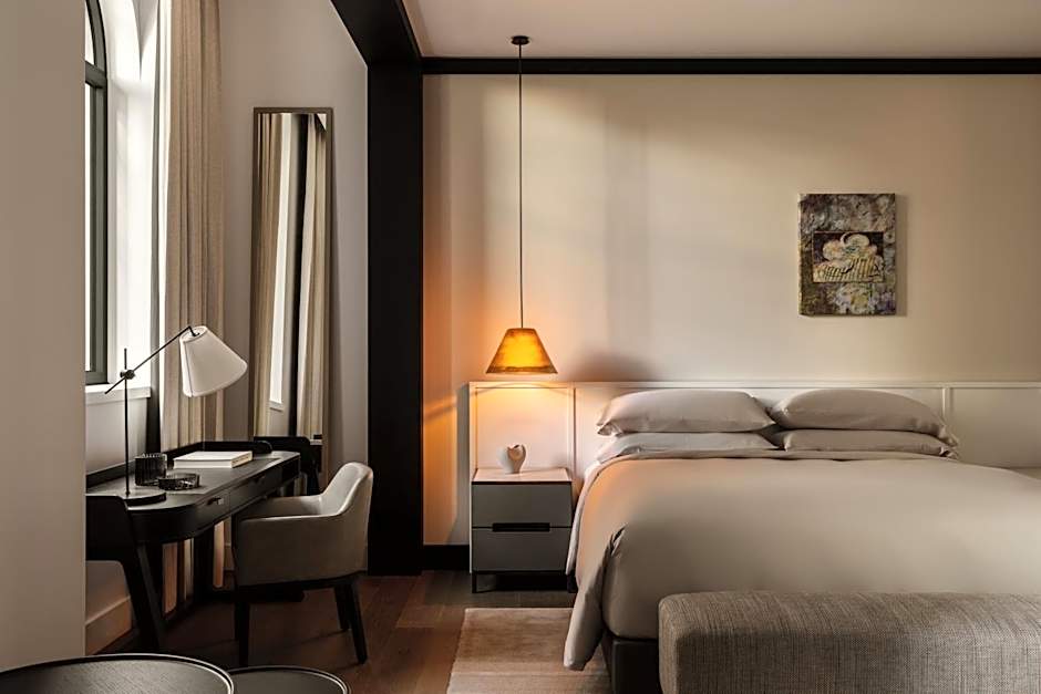 Averaging 171 ft², the Premier King Accessible room is generous in its planning, offering additional space for guests who require greater accessibility. The specially designed bathrooms include a larger shower with handrails, while the sumptuously appointed guest room features a luxurious pillow-top super king bed fitted with custom Italian Frette linen. Composed to highlight the junction of storied heritage features and a contemporary interior design ethos, the rooms showcase a gallery wall of curated artwork and sumptuous furnishings. Intuitive technology allows guests to control lighting, multi-layered curtains, temperature and 24-hour in-room dining from the touch of a tablet, while the personal bar presents a curation of locally sourced products to enjoy in-room.